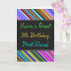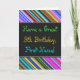 This fun, colourful and whimsical birthday-themed greeting card design features a warm birthday wish like "Have a Great 9th Birthday, First-Name!" on the front. The name on the front can be personalized. The top and bottom of the front feature a vibrant, multicolored stripe pattern. The inside features a birthday message that can be customized. A greeting card like this could be a fun way to deliver birthday wishes to somebody who is celebrating their ninth birthday. [~Z0000269]