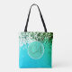 Shades of white, green confetti on a turquoise backdrop. The contrast is popping as it creates a fun, festive touch. Can be personalized in the middle circle