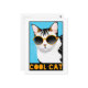This playful and simple cartoon illustration features a cat with the text "COOL CAT" prominently displayed in bold, orange letters at the bottom. Set against a blue background, the cat's ears are clearly visible at the top of the image, though the central portion of the face is partially blurred. The bright and fun design captures a whimsical and lighthearted vibe, perfect for fans of cheerful and quirky art.