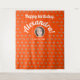 This cute girly tapestry features a vibrant orange red background adorned with a playful, colourful bow pattern all over, creating a fun and festive atmosphere. In the centre, there's a customizable space where you can add the birthday girl's photo to make it extra special for the celebration. The design is complemented by modern, stylish white typography that says "Happy Birthday" followed by the birthday girl's name. Below the photo, the date is displayed in a simple, classic script, adding a personal touch. It’s the perfect decoration to welcome guests and set the tone for a stylish, memorable birthday party!
