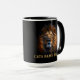 Plaisir personnalisé "I Love My Cat" Lion Mug café sur un arrière - plan en or et noir avec la tête de Lion. Personnalisez votre tasse avec votre nom de chats ou le texte de votre choix. Cliquez sur Modifier la conception pour modifier l'image.