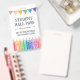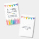 Vertical student hall pass badge personalized with purpose and classroom and teacher's name with coloured pencils in fun colours and a printed bunting flag banner in matching colours with patterned details, like stripes, dots, and stars. Colourful student hall pass with custom text in a fitting pencil grey hand-writing fonts. Personalized kindergarten student hall pass with a fun design with coloured pencils in the colours of the rainbow.