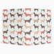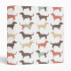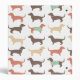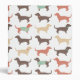 Perfect for anyone who loves dogs and weiner dogs, this patterned design features girly coral pink, teal blue, mint, yellow, cream, and brown colours with dogs wearing collars and sweaters with damask on them.