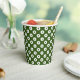 Bring some polka-dotted fun to your special occasion with a set of cups featuring green-in-white spots against a green background.