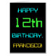 This simple and fun birthday greeting card design features a message like "HAPPY 12th BIRTHDAY, FRANCISCO!". It also features a fun look inspired by digital computing. The name on the front and the message on the inside can be personalized. It could be sent or given to somebody who is celebrating their twelfth birthday, and who perhaps works as a database administrator, a computer programmer, a network administrator, a software developer, an electrical engineer, or who otherwise enjoys using computers. [~Z0000100]