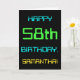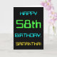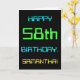 This simple and fun birthday greeting card design features a message like "HAPPY 58th BIRTHDAY, SAMANTHA!". Its appearance is inspired by the field of digital computing. The name on the front and the message on the inside can be customized. It could be sent or given to somebody who is celebrating their fifty eighth birthday, and who perhaps works (or worked prior to retirement) as a database administrator, a computer programmer, a network administrator, a software developer, an electrical engineer, or who otherwise enjoys using computers. [~Z0000100]