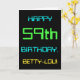 This simple and fun birthday greeting card design features a message like "HAPPY 59th BIRTHDAY, BETTY-LOU!". It also features a fun look inspired by digital computing. The name on the front and the message on the inside can be customized. It could be sent or given to somebody who is celebrating their fifty ninth birthday, and who perhaps works (or worked prior to retirement) as a computer programmer, a software developer, a database administrator, a network administrator, an electronics engineer, or who otherwise enjoys using computers. [~Z0000100]