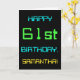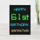 This simple and fun birthday greeting card design features a message like "HAPPY 61st BIRTHDAY, SAMANTHA!". Its look is inspired by the field of digital computing. The name on the front and the message on the inside can be customized. It could be sent or given to somebody who is celebrating their sixty first birthday, and who perhaps works (or worked prior to retirement) as a computer programmer, a software developer, a database administrator, a network administrator, an electronics engineer, or who otherwise enjoys using computers. [~Z0000100]