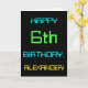 This simple and fun birthday greeting card design features a message like "HAPPY 6th BIRTHDAY, ALEXANDER!". Its look is inspired by the field of digital computing. The name on the front and the message on the inside can be customized. It could be sent or given to somebody who is celebrating their sixth birthday, and who perhaps works as a computer system administrator, a computer programmer, a network administrator, an electrical engineer, a software developer, or who otherwise enjoys using computers. [~Z0000100]