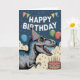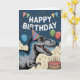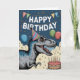 Roar into birthday fun with this playful dinosaur-themed birthday card! Featuring a whimsical T-Rex wearing a party hat, surrounded by colourful balloons, bunting, and a delicious birthday cake, this design is perfect for dino lovers of all ages. Bright, cheerful, and full of prehistoric spirit, it's an ideal way to make someone's special day extra memorable. Customize the inside with your own message to add a personal touch!