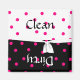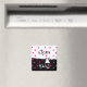 Pretty polka dot dishwasher magnet, with white and pink polka dots, on the top, and a black with pink polka dots, on the bottom. Graphics of a white ribbon, in the middle. White text reads Dirty and black text reads Clean. Makes a great hostess gift.