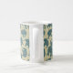 A fun White Ceramic Coffee Mug, with Elephant silhouettes, filled with a dark blue and burgundy Paisley pattern, on a beige background. Part of the Posh & Painterly 'Heffalumps' collection, this pattern can be adjusted to fit any Coffee Mug.