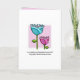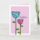 An original illustration or doodle of two flowers, one pink and one blue, against a choice of pale turquoise blue, cherub pink, or blue, pink and green polka dot backgrounds. Perfect for a light-hearted, fun, wedding celebration.
