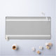 Ce design moderne et audacieux présente deux fines bandes blanches horizontales près des bords supérieur et inférieur du design contre un arrière - plan gris clair.
