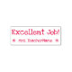 This positive rubber stamp design features the praise message "Excellent Job!" and a personalized teacher's or educator's name. It also features decorative flower icons. It could be used by a school teacher, educator, or tutor when marking assignments, to acknowledge that the student has done well.