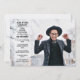 These announcements feature a full photo on the front, with a semi-transparent white band overlay with the wording "Class of 20xx graduate" in bold and masculine black fonts with the graduate's name and 5 customizable fun facts about the graduate with the caption "Did you know?". The back of the card is fully customizable with a second picture and your graduation party invitation details.