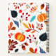 Fun fall harvest pattern with pumpkins, mushrooms and colourful leaves swirling around.
