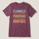 This vibrant and textured fall design highlights the quintessential elements of the autumn season with the words "Flannels," "Hayrides," "Pumpkins," "Sweaters," and "Bonfires." Each word is displayed in bold, uppercase letters, with a weathered texture that gives the design a rustic, vintage feel. The colour palette includes cool blues, warm oranges, earthy greens, and soft browns, capturing the diverse colours of fall. The words "hayrides" and "sweaters" are written in a flowing, cursive script that contrasts beautifully with the blocky text, adding a touch of elegance and movement to the design. Tiny star accents are scattered around the text, adding an extra layer of charm and playfulness.