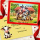 Birthday card featuring a colourful cute image of a gathering of farm animals.