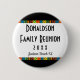 Designed for a round button. Also available in a square button version. A colourful design bar and black banner on the top and bottom of this button/pin makes this a family reunion souvenir stand-out. Use as a gift for reunion contest winners...the oldest family member attending...who travelled the farthest...and so on. See our coordinating Save the Date postcards and reunion invitations at Genealogy Greetings.