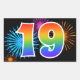 Fun Fireworks + Rainbow Pattern "19" Event Number Sticker