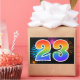 This fun, vibrant sticker design features a colourful celebratory fireworks inspired pattern, along with the number "23" having a multicolored rainbow like gradient pattern, on a black coloured background. Stickers like this could perhaps be used at a party celebrating somebody’s twenty third birthday, or perhaps for a couple’s twenty third wedding anniversary, or some other 23rd event. [~Z0000324]