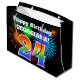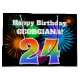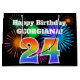 This fun, vibrant gift bag design features a colourful celebratory fireworks inspired pattern, along with the number "24" featuring a multicolored rainbow inspired gradient pattern, on a black coloured background. It also features a personalized name and event message, such as a birthday greeting. A colourful and joyful gift bag like this might be used when giving a gift or present to somebody who is celebrating their twenty fourth birthday. [~Z0000328]