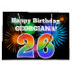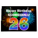 This fun, vibrant gift bag design features a colourful pattern inspired by celebratory fireworks, along with the number "26" featuring a multicolored rainbow like gradient pattern, on a black coloured background. It also features a personalized name and event message, such as a birthday greeting. A colourful and joyful gift bag like this might be used when giving a gift or present to somebody who is celebrating their twenty sixth birthday. [~Z0000328]