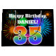 This fun, vibrant gift bag design features a colourful celebratory fireworks inspired pattern, along with the number "35" having a multicolored rainbow like gradient pattern, on a black coloured background. It also features a customizable name and event message, such as a birthday greeting. A colourful gift bag like this might be used when wrapping a gift or present that is being given in celebration of somebody’s thirty fifth birthday. [~Z0000328]