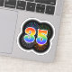 This fun, exciting sticker design features a colourful bursting celebratory fireworks inspired pattern, along with the number "35" featuring a multicolored rainbow inspired spectrum or gradient pattern. An exciting sticker like this might be used when celebrating somebody’s thirty fifth birthday, or perhaps a couple’s thirty fifth wedding anniversary, or some other 35th event. [~Z0000362]