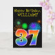Fun Fireworks + Rainbow Pattern "37" Birthday # Card
