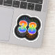 This fun, exciting sticker design features a colourful pattern inspired by bursting celebratory fireworks, along with the number "38" having a multicolored rainbow inspired spectrum or gradient pattern. A sticker like this might be fun to use when celebrating somebody’s thirty eighth birthday, or perhaps a couple’s thirty eighth wedding anniversary, or some other 38th event. [~Z0000362]