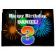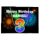 This fun, vibrant gift bag design features a colourful celebratory fireworks inspired pattern, along with the number "3" featuring a multicolored rainbow inspired gradient pattern, on a black coloured background. It also features a personalized name and event message, such as a birthday greeting. A fun gift bag like this could be used when wrapping a present or gift being given in celebration of somebody’s third birthday. [~Z0000328]