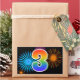 This fun, vibrant sticker design features a colourful pattern inspired by celebratory fireworks, along with the number "3" featuring a multicolored rainbow inspired gradient pattern, on a black coloured background. Stickers like this might be given as a small gift while celebrating somebody’s third birthday, or perhaps for a couple’s third wedding anniversary, or some other 3rd event. [~Z0000324]