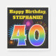 This fun, vibrant paper napkin design features a colourful pattern inspired by celebratory fireworks, along with the number "40" having a multicolored rainbow inspired gradient pattern, on a black coloured background. It also features a personalized name and event message. Paper napkins like this could perhaps be used at a party being held to celebrate somebody’s fortieth birthday. [~Z0000326]