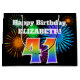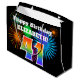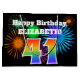 This fun, vibrant gift bag design features a colourful pattern inspired by celebratory fireworks, along with the number "41" having a multicolored rainbow like gradient pattern, on a black coloured background. It also features a personalized name and event message, such as a birthday greeting. A gift bag like this might be used to wrap a present or gift being given in celebration of somebody’s forty first birthday. [~Z0000328]