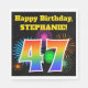 This fun, vibrant paper napkin design features a colourful celebratory fireworks inspired pattern, along with the number "47" having a multicolored rainbow like gradient pattern, on a black coloured background. It also features a customizable name and event message. Paper napkins like this could perhaps be used at a party being held to celebrate somebody’s forty seventh birthday. [~Z0000326]