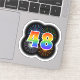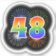 This fun, exciting sticker design features a colourful bursting celebratory fireworks inspired pattern, along with the number "48" having a multicolored rainbow like spectrum or gradient pattern. A sticker like this might be used when celebrating somebody’s forty eighth birthday, or perhaps a couple’s forty eighth wedding anniversary, or some other 48th event. [~Z0000362]
