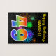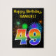 This fun, vibrant puzzle design features a colourful celebratory fireworks inspired pattern, along with the number "49" having a multicolored rainbow like gradient pattern, on a black coloured background. It also features a personalized name and event message, such as a birthday greeting. A puzzle like this might be a fun way to send a greeting message to celebrate somebody’s forty ninth birthday. [~Z0000329]