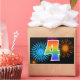 Fun Fireworks + Rainbow Pattern "4" Event Number Sticker