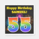 This fun, vibrant paper napkin design features a colourful pattern inspired by celebratory fireworks, along with the number "55" having a multicolored rainbow like gradient pattern, on a black coloured background. It also features a customizable name and event message. Paper napkins like this could perhaps be used at a birthday party being held to celebrate somebody’s fifty fifth birthday. [~Z0000326]