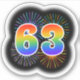 This fun, vibrant sticker design features a colourful pattern inspired by bursting celebratory fireworks, along with the number "63" featuring a multicolored rainbow like spectrum or gradient pattern. A fun sticker like this might be fun to use when celebrating somebody’s sixty third birthday, or perhaps a couple’s sixty third wedding anniversary, or some other 63rd event. [~Z0000362]