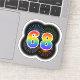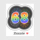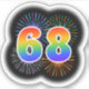 This fun, exciting sticker design features a colourful pattern inspired by bursting celebratory fireworks, along with the number "68" featuring a multicolored rainbow inspired spectrum or gradient pattern. An exciting sticker like this might perhaps be used when celebrating somebody’s sixty eighth birthday, or perhaps a couple’s sixty eighth wedding anniversary, or some other 68th event. [~Z0000362]