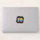 This fun, vibrant sticker design features a colourful bursting celebratory fireworks inspired pattern, along with the number "70" featuring a multicolored rainbow like spectrum or gradient pattern. A fun sticker like this might perhaps be used when celebrating somebody’s seventieth birthday, or perhaps a couple’s seventieth wedding anniversary, or some other 70th event. [~Z0000362]