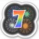 This fun, exciting sticker design features a colourful bursting celebratory fireworks inspired pattern, along with the number "7" having a multicolored rainbow inspired spectrum or gradient pattern. A sticker like this might be used when celebrating somebody’s seventh birthday, or perhaps a couple’s seventh wedding anniversary, or some other 7th event. [~Z0000362]