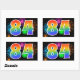 This fun, vibrant sticker design features a colourful celebratory fireworks inspired pattern, along with the number "84" having a multicolored rainbow like gradient pattern, on a black coloured background. Stickers like this might be given as a small gift while celebrating somebody’s eighty fourth birthday, or perhaps for a couple’s eighty fourth wedding anniversary, or some other 84th event. [~Z0000324]