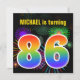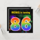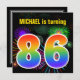 This fun, vibrant birthday party invitation design features a colourful bursting celebratory fireworks inspired pattern, along with the number "86" featuring a multicolored rainbow like spectrum or gradient pattern. The name on the front can be customized. The back features customizable information about the party. Birthday party invitations like this might be used to invite guests to a birthday party being held to celebrate somebody’s eighty sixth birthday. [~Z0000337]
