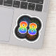 This fun, vibrant sticker design features a colourful pattern inspired by bursting celebratory fireworks, along with the number "88" having a multicolored rainbow like spectrum or gradient pattern. A sticker like this might be used when celebrating somebody’s eighty eighth birthday, or perhaps a couple’s eighty eighth wedding anniversary, or some other 88th event. [~Z0000362]