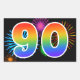 Fun Fireworks + Rainbow Pattern "90" Event Number Sticker