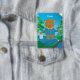 A fun rectangular pin button for kids featuring a fishing brown bear . Personalize it with the child's name .